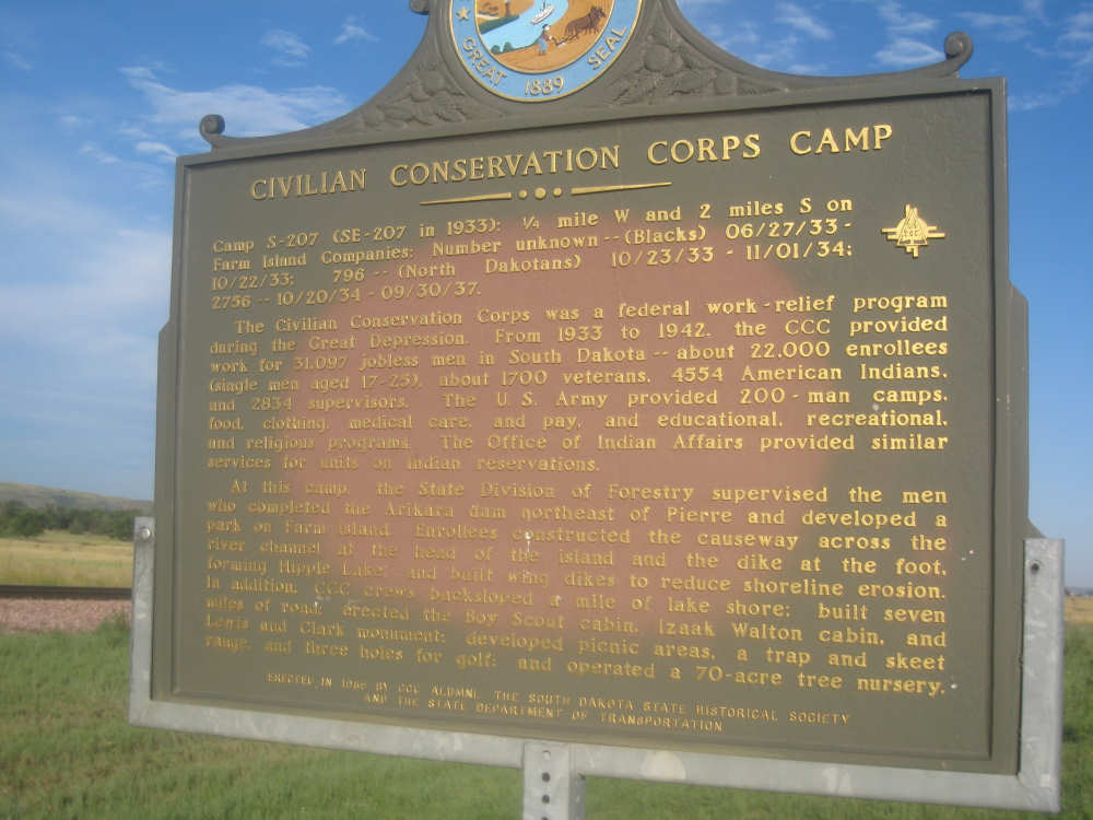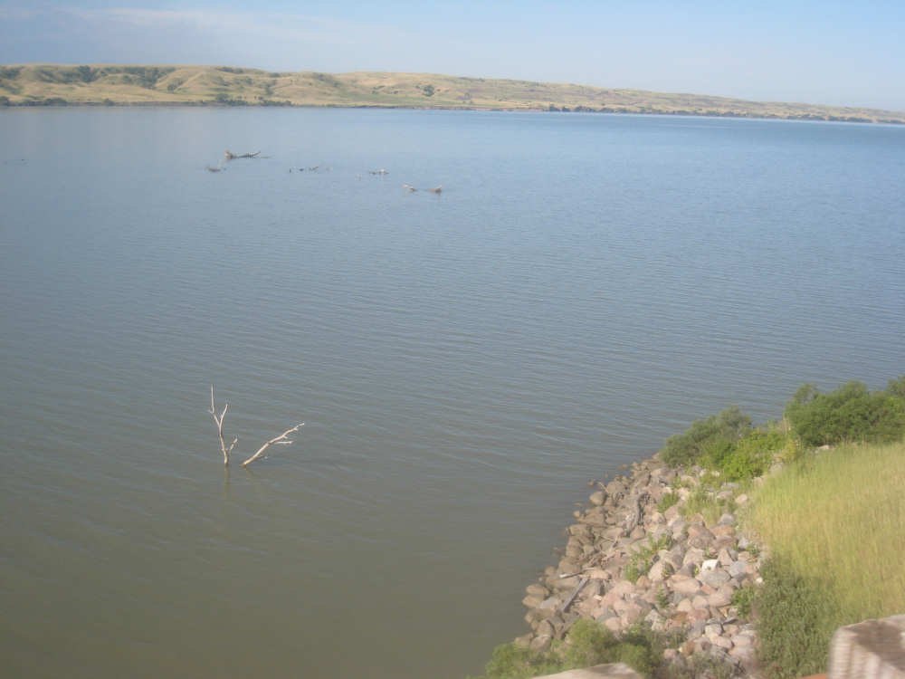 Tuesday, August 05, 2008 A very different day today than yesterday - bright & sunny with almost no wind. We were dry but we were also pretty hot. Luckily, there weren't that many hills - one steep hill and a long, fairly gradual climb, both around midday, and just the usual minor ups & downs the rest of the time. We left at 8, a little later than usual because we had to wait around for someone to show to take our 7K picture. We got it right in front of the State Capitol in Pierre, expecting there to be a lot of people around at that time, going to work and all, but it was pretty sparse. Finally, someone drove up and parked just across the street from us and graciously consented to take our picture. Then we went to breakfast and headed off. We were right along the river for the first 15 miles or so, which was a real treat. The hills along the river are very pretty and it was pleasant riding along the water. We saw a couple of historic markers along the river, both a little hard to read. One was about the Civiian Conservation Corps which provided work for over 31,000 men in South Dakota during the Depression. They worked on the Arikara Dam northeast of Pierre, a park on Farm Island in the Missouri River near Pierre, and various other projects in the area. The other plaque was about the old Fort Sully which was located near that point during 1863-1866 and then moved 36 miles upstream. The plaque looks like it's been through some wars itself. We only had one other marker today, about a fur trading post at a bend in the river just before our road veered away from it. This plaque was at the top of our steep hill where we had a lovely view of the river. We had a few interesting sights today. There were several silhouette-style statues in one area - some Indians and cowboys on horses arranged along the brow of a hill with some buffalo grazing below and an eagle landing near a rock below as well. There was also one of an Indian standing in front of his horse, looking like he was praying to the heavens. We saw a number of horses as usual, including one little family of four on a hill. We also saw lots of cattle, some very large herds spread out over a lot of land, but also one small herd that watched us intently as we approached and then started to run along with us as we went by! We'd never seen that before (some have run away from us as we approached) - maybe they thought we had come to feed them and they didn't want to miss us. We also saw one little calf all by himself on the wrong side of a fence! He was right up next to the fence, away from the road, but he started to run after us a little, too, as we went by. Maybe our trailer looks like a feed wagon to them, I don't know. As we moved away from the river, the croplands came back and we saw the usual immense fields of corn, hay, sunflowers, and other crops. We entered the Crow Creek Indian Reservation after about 40 miles and after another 5 miles or so, we came to the only store we saw today. It was a gas station/convenience store next to the Stephan Indian Mission school. We bought a bag of ice to replenish our camelbaks which were just about dry then, and a couple of sodas, and chatted with the store owners as we drank them. The remaining 15 miles of the day were mostly downhill and we finally had a little bit of breeze as well, almost a tailwind. We finally saw the Missouri again at the bottom of our descent as we approached Fort Thompson. We stayed at the Lode Star Motel, which is associated with the casino and restaurant of the same name. They are all run by Native Americans from the reservation. We were very impressed with our room, which was as nice and well-equipped as many higher-priced rooms we've been in. The food in the restaurant was good, too, although eating in a casino was not so pleasant, with all the racket from the slot machines dinging in the background! We arrived at our motel at 3:30, having done almost 62 miles in a little over 5-1/2 hours of bike time, almost as good an average as yesterday, but an extra 1-1/2 hour of elapsed time as we stopped more frequently today. |