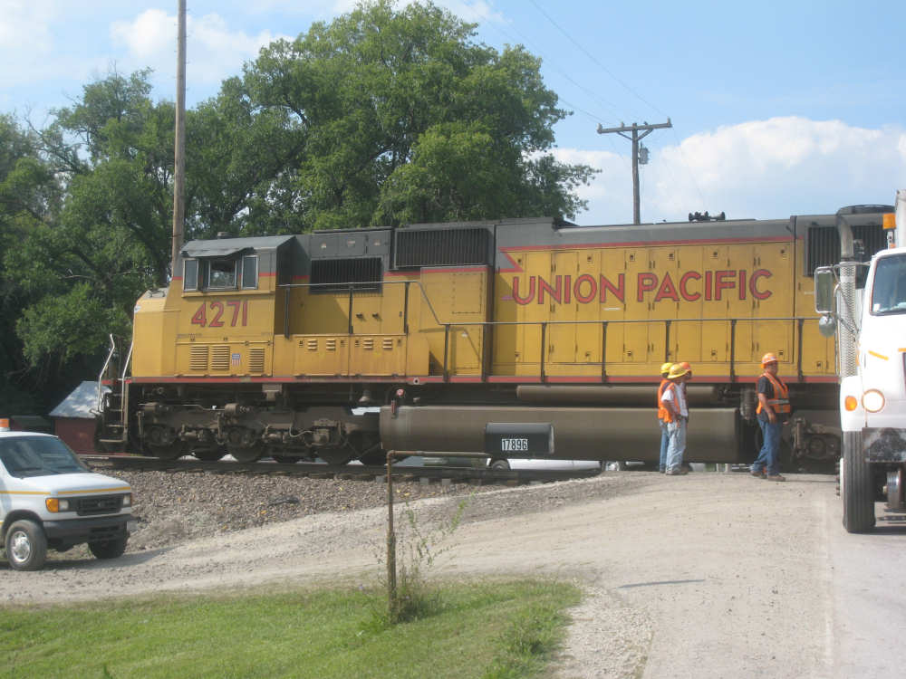 Tuesday, August 19, 2008 Another sunny, warm day with calm winds. We left Higginsville at about 5 minutes to 8:00 and passed a neat mural of the Confederate Memorial State Historic Park on a building in town. We also passed the Confederate Memorial site itself a little ways out of town, but didn't see anything besides a fancy gate. It apparently was the site of a Confederate Soldiers Home, an old-age home for Confederate veterans until the last one died in 1950 at the age of 108. It still houses an 106-year-old chapel and a cemetery. Missouri was a Confederate state that was the site of some very difficult battles (e.g. the Battle of Lexington) during the Civil War. We stayed on Rt. 20 from Higginsville through Marshall, our mid-way lunch spot. It started out very rough but we later came to a long smooth stretch of new concrete paving. The road was hilly (of course) but nothing as steep as yesterday morning, just a constant up and down. But we must be getting used to this - it seemed pretty routine. Pat's worried that we'll be bored to death on the supposedly flat Katy Trail which we'll start on tomorrow. I could use a little boredom about now. Nothing too exciting before Marshall - we passed through a lot more crop fields (maybe it's too hard to farm those much hillier places), mostly corn and soybeans and hay. The farmhouses looked more normal today as well, no mansions like we had been seeing (must have been the proximity to Kansas City, the state's largest city). We also saw a few more cows and a lot more horses, including a farm with a riding stable and some very cute little colts. Marshall was a pretty city with a gorgeous city hall in the middle of an attractive square. We rode around the square looking for a good place for lunch and finally asked a local. He directed us to a little diner that we practically didn't see even with his good directions. It barely had room for a lunch counter - no tables - and a grill. The cook was grilling our cheeseburgers about 2 feet in front of us, and they were very good. The place was full of locals - we were lucky there were two seats open - and of course they asked us about our trip. As we were leaving, waiting to pay at the register, another woman came in to pick up an order and she wanted to know about our trip as well. She was so impressed that she insisted on paying for our lunch! Which reminds me, I neglected to mention another friendly Missourian who flagged us down yesterday as we were passing by his front lawn and asked us if we needed anything - water, bathroom, whatever. We had just come from Lawson where we eaten and topped up our camelbaks so we didn't need anything as it happened, but we chatted with him for a while before going on our way. So that makes three days in a row that we've been in this state where a local has extended a courtesy to us - not a bad batting record, Missouri! After Marshall, we got onto Rt. 41, a rougher road generally, but not terrible. We came upon another historic town, Arrow Rock, which was once a thriving river port on the Missouri River. There is a restored village there which we did not visit, although we did see some of the houses along the road, including the Lawless house which had a historic marker in front of it. Arrow Rock was also a point on the Santa Fe Trail which went from Franklin, Missouri to Santa Fe, New Mexico and was an important trade route until the Santa Fe railroad took its place. But the most fun came about 10 miles later near the town of Lamine. Pat heard some train noises ahead and I joked that a train was probably crossing our road, shades of Atchison, KS, where we were held up 3 times by trains. Well, we turned a corner and saw a line of cars stopped at a train crossing with a train stopped in front of them. There were some trucks and a bunch of railway workers milling around, too. We were due for a rest anyway, so we pulled up to the tracks and got out our bananas for a little snack. The train vehicle that was blocking the roadway soon moved, however, and the traffic moved on. It occurred to us that the train contraption might have moved just to let traffic through and then move back again, so we hurried through ourselves and then parked on the other side to finish our snack and watch what these guys were up to. We didn't really figure it out, but it was interesting to watch the bizarre contraption they were working with. We then moved on to the next obstacle. Just beyond the tracks was a bridge that was being worked on. The bridge was over the Lamine River which flows into the Missouri, a pretty river that we could barely see through the bridge and the work that was being done on it. They had closed one lane on the already narrow bridge and were letting cars through by a traffic signal. I think we went across later than they would have liked but we couldn't get across any faster. The bridge, as you can see in the pictures below, was in dire need of repair - we were nervous going across it. It was similar to one we'd crossed a couple of days ago on our first day in Missouri, though. At least they were working on this one. After that, it wasn't far to our hotel, and we made it a little shorter by slipping onto Interstate 70 for a 3-mile stretch between exits. The road was very nice and smooth but there was a lot of traffic so it was a little frenetic. But our hotel was just off the Interstate so it seemed worth it. We arrived at the hotel at 5 minute of 5:00, having done 66-1/4 miles in 6 hours and 40 minutes, just over 10 mph average which, given all the hills, we were pretty pleased with. |