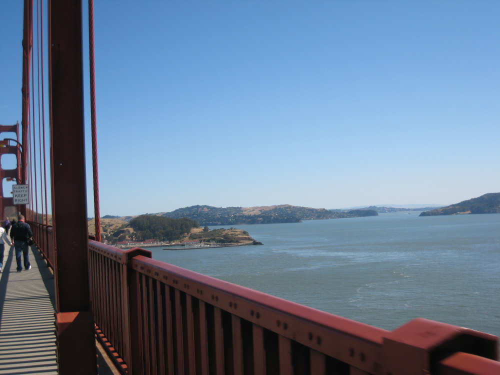 Wednesday, June 04, 2008 Sorry for blowing off yesterday. We spent most of the day working on our route for the next week and napping (Shane kept us up late every night!). The only interesting thing we did all day was go out to dinner and ice cream with Shane, Sky and Becca and I managed to forget to bring the camera. So we didn't have any pictures, but we were going to put up a page anyway and then go to bed early for a change, except that we got immersed in watching the presidential candidates' speeches and ended up staying up late after all. So we decided to bag it and get some sleep. Today we got up bright and early and packed up all our stuff. We had a major problem of how to get from Befkeley to the Golden Gate Bridge in San Francisco without biking over the Bay Bridges (very bad to do on a bike). Shane resolved the problem by borrowing a van and hauling us and the bike over to the Presidio area near the Golden Gate in it. Then we rode through the Presidio to the Golden Gate Bridge. There was a statue of the man who was the chief engineer on the bridge building project at the foot of the bridge, as well as a sample bit of the cable that holds it up. Very impressive looking. With all the extra fussing of loading the bike in the van, getting driven over and unloading, then riding to the bridge and taking pictures there, we didn't start heading over the bridge until about 9:30. There was a lot of car traffic on the bridge, but not too much bike and foot traffic on the walkway so we had a pretty easy ride. I was a little nervious starting out because the bridge was so high up over the water, but it didn't seem too bad after all. There are two walkways, one on each side of the bridge, but one on the ocean side was closed because of painting, and we actually saw two guys up in a little bucket working on the wires. That's definitely not a job I'd like! Once we were off the bridge in Marin, we got some help from another bicyclist as to how to proceed (it was a little confusing there and we wanted to make sure we didn't get on the freeway), and headed off toward Sausalito. Sausalito is another cute shore town with very chi-chi stores and nice parks and marinas. We took pictures of the San Francisco skyline, which we could still see although it was a little fuzzy and the islands in the bay. We started climbing and saw some neat valleys full of houses. We went by Mill Valley, but I don't think we saw it. We did go through a number of nice small towns - Corte Madera, Larkspur, Kentfield, Ross, San Anselmo, and Fairfax - one blending into the other. Then we got into the woodsier areas and started seeing lots of trees, some redwoods, but many others, too - eucalyptus and oak predominantly. We also got into a steep climb as well. Couldn't tell if we had gotten "soft" from our week off, but it seemed to go on forever. We got to the town of Lagunitas on the downhill slope and stopped for a pick-me-up. We liked the milkshakes we had so much that we decided we ought to get something for dinner there as well. Good thing we did, because there was nothing else from there to the end of our day, except for a little deli. After Lagunitas, we got onto a bike trail through the Samuel P. Taylor State Park, which was gorgeous - crammed full of trees, mostly redwoods, and with the Lagunitas Creek running through it. The trail surface was better than the road we'd been on before that, too! After the bike trail, we went over Olema Creek and through the tiny town of Olema, then up a small road called Bear Valley which followed the creek and came up to the point of Tomales Bay, in the heart of the Point Reyes National Seashore. This area is a pristine, protected area with lots of marine life and birds and trees. We weren't near enough to the shore to see the ocean, but the part we were in was heavily wooded and quite beautiful. We turned onto Vallejo Road where the inn at which we would be staying was located. The inn looked almost like a huge tree house, nestled in the woods as it was. We dismantled the stuff on the bike and took it all up to our room and left the bike parked outside the main level of the inn. The place was practically deserted tonight, only one other couple was there and they kept out of sight. So we had the living room and kitchen area of the inn to ourselves as we had our dinner and worked on our website. We can't wait to get into that cushy bed up in our room, though! We ended the day at 3:45, with 40 miles in about 4-1/2 hours of bike time. Tomorrow should be a little easier although about 5 miles longer, and we'll be starting out late because we'll be having breakfast here, which doesn't start until 9:30. But we wouldn't want to miss it! |
