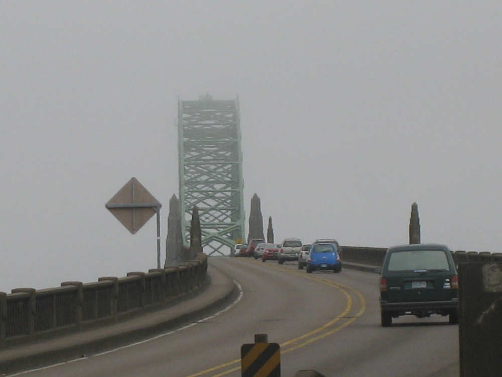 Friday, June 20, 2008 We were reminded this morning that Oregon is supposed to be foggy and chilly - for the first time in several days, it was. It looked like it would clear right up, though, but it clouded over again as we headed north. Visibility on the road was still good, at least. We ate breakfast right next door to the motel and headed out around 8. We were expecting an easy day (always a bad expectation - it seems to invite mischief to happen) and it turned out to be the case for once. We only had one large hill, a 2-miler but it had a very easy grade, and other than that, there was just a little up and down, just enough to keep it interesting. We were on 101 all day again; today the traffic was worse and seemed to worsen as the day went on. Other than that, it was a very pleasant day. Nothing major to report today. We went through a number of small towns, all of which look so much like the New Jersey shore towns - Pat often remarks how strange it is that towns on the two coasts should be so similar. They even have salt water taffy here! The first town was Wakonda Beach which was very picturesque. Then came Waldport, a little larger but also very artsy. Here we crossed the Alsea Bay at low tide, with lots of tidal pools. The bridge was not as ornate as some we've been on recently but had a nice wide shoulder. Then there were a string of little towns, all with their state beaches. Seal Rock was the largest of these and had some very large, impressive rocks along the coast. Then we came to Newport, our big midpoint town, but it was too early for lunch so we got a snack and had some sandwiches packed to go. At Newport, we crossed Yaquina Bay on a long bridge with no shoulder. This time, we had a button to push to set off flashers indicating there was a bike on the bridge. We pushed the button, but I don't know how much time it gave us (it probably thought we'd be much quicker than we were). Pat noted that this bridge was no wider than the one where we had to use the sidewalk to walk the bike across. This one had a similar sidewalk but a much lower guardrail so I was pretty glad not to be on it. Yaquina Bay was pretty, with the houses of Newport arrayed on the far hillside. Newport itself seemed like a vibrant town with lots of colorful shops and a lot of traffic. We hit our hill soon after Newport and our first view of it was a little daunting - there was construction clogging the road at the bottom and heavy fog part way up. However, the construction was just at the bottom and the fog lifted pretty magically - in fact, the sun came out for the first time while we were climbing (it didn't last long). We actually passed someone going up the hill (that was a first!). He was walking his bike and carrying a backpack as well as a bag on the bike. He complained about his mountain-bike tires being too slow on the hills, but he also didn't look like he was in any hurry to get anywhere. After the hill, it was more small towns and beaches/state parks - Otter Rock, Depoe Bay, Lincoln Beach, Glenenden Beach - all of them cute shore towns with lots of gift shops, wood carving, glass blowing and other crafts, fudge and salt water taffy to sell and lots of forms of recreation available. Depoe Bay claimed to having the world's smallest harbor, but it was a very pretty one. Just before Lincoln City, our destination, we crossed Siletz Bay, a marshy bay which is also a National Wildlife Refuge. The bay and Siletz River itself were both beautiful, but as we got closer to the city, the edge of the bay there seemed to be a tree trunk graveyard. It was strewn with large dead trees half-buried in the water. Lincoln City is another large, lively town with lots of traffic. We pulled into our motel at 3 pm (the earliest we've been in a while!) having done 51 miles in 5-1/4 bike hours, our best since San Francisco. We have an ocean view at the motel which was very nice when we checked in but now is so socked in with fog, you can't even see the water (we can still hear it, though!). We just about hit our 5,000 mile mark - 4,999.4 - close enough for me, but Mr. Stickler for Accuracy wouldn't hear of it, so we'll take our 5,000 mile photo tomorrow at breakfast I guess. The next two days will be a lot hillier again, and will end at Seaside, our last stop on the Pacific Ocean. We will certainly miss it! |