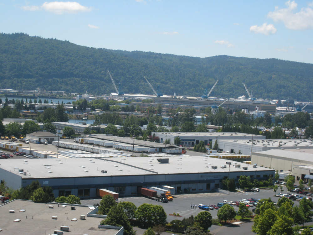 Wednesday, June 25, 2008 Yep, today started out chilly and cloudy, but it cleared up again mid-morning and became quite warm by mid-afternoon. We didn't see any temperature readings then, but it felt like high 80's by the time we ended the day. We left Longview around 7:30, having had breakfast at a place right next to our motel, and headed back over that really high bridge back into Oregon. The traffic was fairly light this morning so it didn't rattle nearly as much, thankfully. There were huge stacks of logs on the Washington side of the river, maybe even more so than the Oregon side. We followed the Columbia again today, not close enough to see a lot of the time. We did see marshes and valleys and lots of forests, though. At one point, we startled a blue heron who flew off a little ways and settled back down again in the high grasses. We stopped to see if I could get a photo without scaring him off and I did manage to get one before his mate came squawking over and the two of them flew off. Unfortunately, I didn't get one of the two of them in flight. We passed through a few small towns again today, stopping to eat lunch at one of them. Pat noticed the front tire was soft and we kept riding until we got to the next town, St. Helens, thinking we'd find a good place to sit and change it. What we found was a bike shop and Pat decided it would be nice to let someone else fix it so we went in. After a long struggle (our Kevlar tires are hard to get on and off), we had a new inner tube on and we stopped next door at a Chicago-style sandwich shop for lunch. This was the second time Pat let someone else change a tire for him, the last time being in Tempe, AZ when we had to get a new rim for the front tire, and this time ended the same as the last one - after another 30 miles or so, the tire blew and he had to change it again. We had a long day today, 68 miles, the longest we've done in a while. The route was mostly quite flat so it went fairly quickly and uneventfully. We approached Portland after about 48 miles and meandered through its residential streets for about 10 more miles, passing a bit of the University of Portland. We began to see glimpses of snow-covered Mount Hood in the distance; it looked quite ethereal, a large white peak hovering against a pale blue sky. We had to go across the St. John's bridge across the Willamette River, an offshoot of the Columbia, to get into Portland. The bridge was a beautiful old bridge, designed by the same person who designed the Golden Gate, we found out later. The road to the bridge and the bridge itself were both quite narrow and had lots of traffic, including a fair number of trucks. The bridge, at least, had two lanes each way but no shoulder, so we had to take up a whole lane. Luckily, it was pretty short. From there, we worked our way back over to the Columbia River and had an early dinner at a place on the river. Then we headed along the river to 205, getting much better views of Mount Hood as well as the Portland airport, which we went right by. After some difficulty, we found our way onto the bike path for 205. It turned out to be a lane in-between the north- and south-bound lanes of traffic. We were glad to be out of the traffic, because at this point it was rush hour and there were lots of cars zooming both ways between Portland and Vancouver, on the Washington side. The bridge was low on the water (which I liked) but tended uphill towards Washington, the most climb we'd had all day. It was a long bridge, about 2 miles, and crossed an island midway. This bike path is where our tire went, so at least we were out of traffic when we had to change it. We had a little difficulty finding our way around after we reached the Washington side, but we managed to find Dick and Dorothy's home after a bit, arriving around 6 pm. Dorothy had some delicious home-made strawberry cheesecake waiting for us, just the thing after a long, hot day of riding. We quickly felt at home and had a nice chat with the two of them over cheesecake and coffee. Then we set to work on our website and went to bed. We finished the day at 68 miles in 6-1/4 bike hours, a good average considering how long a day it was. Tomorrow, we continue to relax at Dick and Dorothy's for our rest day. |