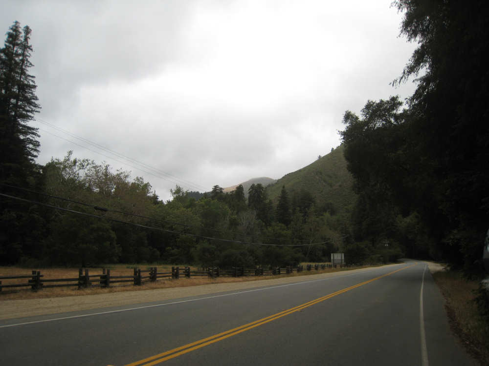 Sunday, May 25, 2008 Cloudy again today, and rather cool. We packed up the tent and everything this morning and headed out by 8:10, having decided to find breakfast on the road instead of eating in the Big Sur Lodge again (they didn't open until 8 anyway). The road was lined with redwoods so the scenery was very dark and woodsy for a bit. We followed the Big Sur River for a good while and passed several other state parks with camping facilities. We saw a small restaurant that was open for breakfast and stopped there. Another couple arrived just after us and was seated at the table next to us. We got to talking - they were Anthony and Jenny from Worchestershire, England. Anthony was here for business, and they decided to stay on for 10 more days, traveling along the west coast. We had a pleasant chat and a delicious breakfast and then headed off. The road opened up after a few miles, and we were back to the rolling hills with grasses and short shrubs. We finally got a glimpse of the ocean again around Point Sur. As we approached the ocean, we saw a hill poking up in the distance, with what looked like a big house and water cistern on top of it and a long winding road going up to it. As we got closer, we saw that the hill was right along the ocean, almost an island. There was a sign down the road leading to it that seemed to indicate it was a naval facility of some kind, but that might have been the buildings closer to the road and not the one on top of the hill. We got several more views of this hill as we got closer to the coast, and as we traveled farther up the coast as well. We continued up the coast, with one long (2-mile) climb, for another 15 or 20 miles without going through another town until Carmel Highlands. We did see some beautiful coastline, though, as well as some tall, green-covered mountains, and several creeks that emptied into the ocean. Across some of these creeks there were a series of historic bridges, built between 1931 and 1935. They were impressive monumental structures and had obviously stood the test of time. We also saw lots of wildflowers, including some yellow lupine which one of the camp hostesses told us was just beginning to come out (she did wildflower photography and so was very familiar with what was coming out when). It was a delightful stretch of the road. We then came into Carmel Highlands and, shortly after that, Carmel. These were both lovely towns, with well-to-do neighborhoods and lots of green space. Coming into Carmel, we passed a large body of water which had a sign saying Carmel River, but it looked more like a lake. We passed the Carmel River again soon afterwards when it looked much more like a river. We stopped for lunch at a quaint place called the Black Bear Diner which was very good and then headed up our second long hill of the day. It had started to drizzle a little and felt even cooler than it had in the morning. The road had changed from the narrow 2-lane road to which we had become accustomed, to a 4-lane busy highway. By the time we got to the top of the hill, we were quite glad to be pulling off onto a bike path and getting away from the busy, nosiy highway. The bike path went steeply downhill for a good stretch - again, we were glad to be on a bike path away from traffic; we could go a lot faster without worrying about cars turning or coming in from cross streets. The bike path took us into Monterey and we came to the Monterey State Beach, which had a lovely park with a water channel through it. There were several people out in paddleboats on the water and walking, biking, and roller blading in the park. Our route took us away from Fisherman's Wharf and the Aquarium, which would have been nice to see, but the traffic in that area was pretty dense. So we went off on the bike path, which I expected to be very scenic, but after one spot with a good view of the Monterey Peninsula and the Bay, the water was hidden behind a wall of sand dunes. The dunes themselves were not very picturesque, and it was still very cloudy and chilly - it was a rather disappointing way to finish an otherwise wonderful day. We arrived at Marina and found our motel very easily, for which we were thankful, checking in at 4 pm. We ended up at 41 miles in 4-1/2 hours of bike time, very glad to be in a motel and not camping again. Tomorrow, we'll be taking a short excursion inland to visit our friend Seth in Aromas. |