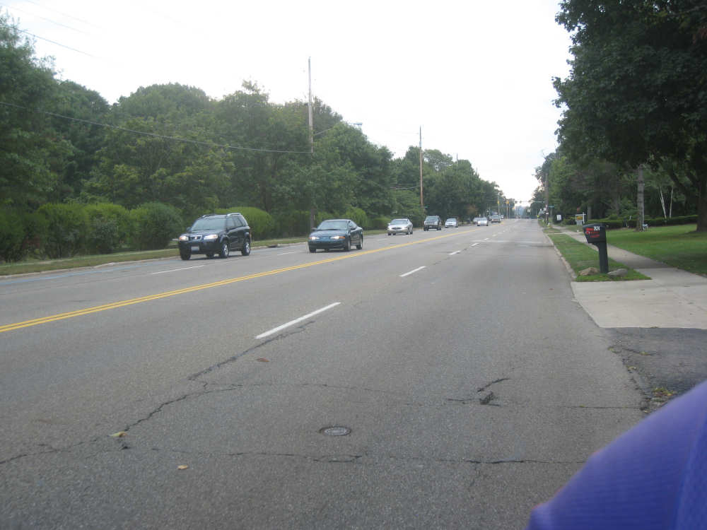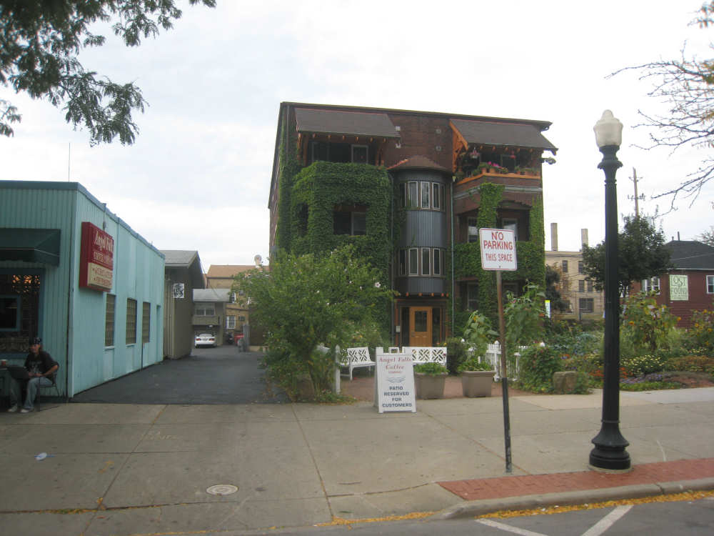Friday, September 05, 2008 After a wonderful night at the B&B, we were treated to a sumptuous breakfast this morning, cooked and served by JoAnn (sorry if I've mis-spelled it). JoAnn was delightful to talk with as well and we lingered over breakfast talking about our trip and her interesting life. We got off at about 8, with 2 delicious Christmas Cranberry Muffins, that she had made for us last night, tucked away in our bags to snack on later in the day. It was sprinkling a little as we left, just a teaser for what would come later. We went through downtown Medina, which turned out to be quite lovely, with a nice square in the center, and then the town seemed to go on forever after that. There were some fancy houses along the road and then the road widened out to a more commercial strip. We crossed 2 interstates, 71 and 77, and slipped into suburbs of Akron, Copley and Fairlawn and maybe others, without much of a break in the shopping malls and other businesses lining the road. Everything looked quite new and well-maintained, including the road itself - nice, smooth shoulder. It made the riding quite pleasant, as did the cooler weather. The clouds were quite threatening but the rain held off until we had gotten nearly all the way through Akron. The city of Akron itself was very interesting. The road surface went from wonderful to horrible as soon as we entered the city limits and the road itself narrowed to a 2-lane with no shoulder, but the neighborhoods we went through were quite fancy and the houses quite grand. There was a huge campus for the Sisters of St. Dominic, with lovely parks and ponds with fountains. Then we went into a commercial district and the road improved and widened. We crossed I-77 again and I-76 (it was quite nostalgic to see that). We passed several interesting buildings, the University of Akron, the main post office, the art museum, and the Goodyear plant. There was a plaque in front of the Goodyear buildings with a little history of the Goodyear Company, which made Akron the "Rubber Capital of the World". All in all, it was a fascinating city. We decided to have lunch before we left town since we didn't think there would be many options afterwards. As we were eating, the first batch of rain started, so we set off with our rain jackets on, only to take them off again a few miles later. It was just a light drizzle for the most part and the jackets just made us too warm.